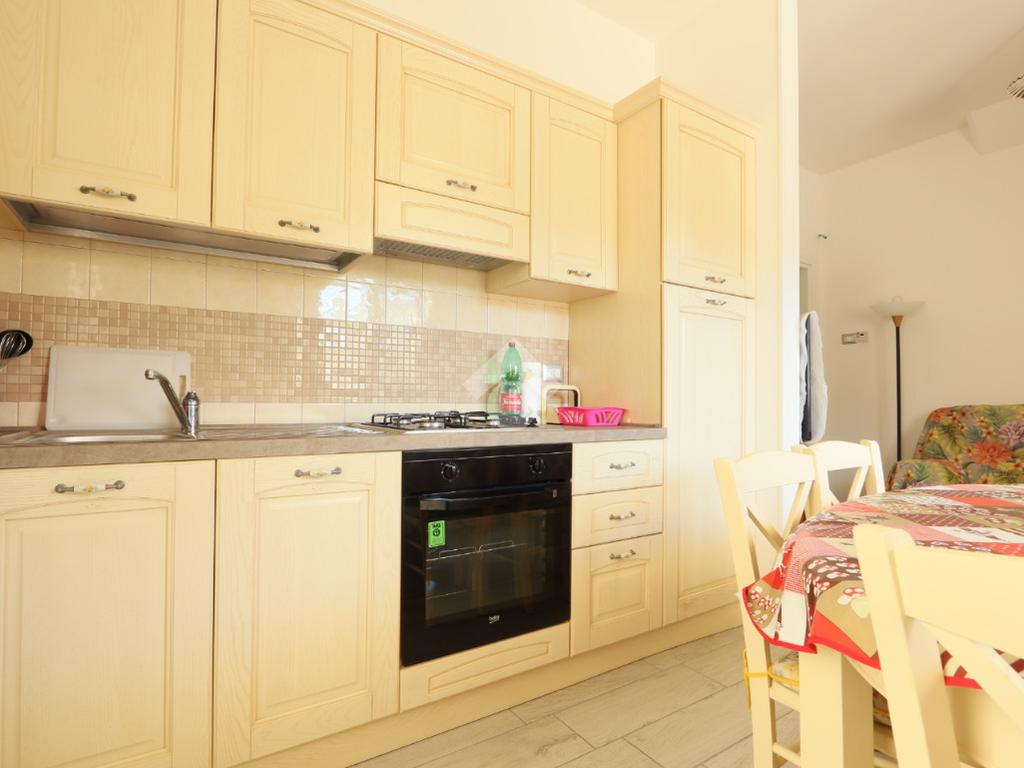 L’abitazione si apre su un accogliente soggiorno con angolo cottura, un ambiente luminoso e ben organizzato che unisce praticità e comfort. Da qui si accede direttamente a una grande corte esterna privata, ideale per pranzi all’aperto, momenti di relax o per chi ama vivere gli spazi esterni in ogni stagione.
