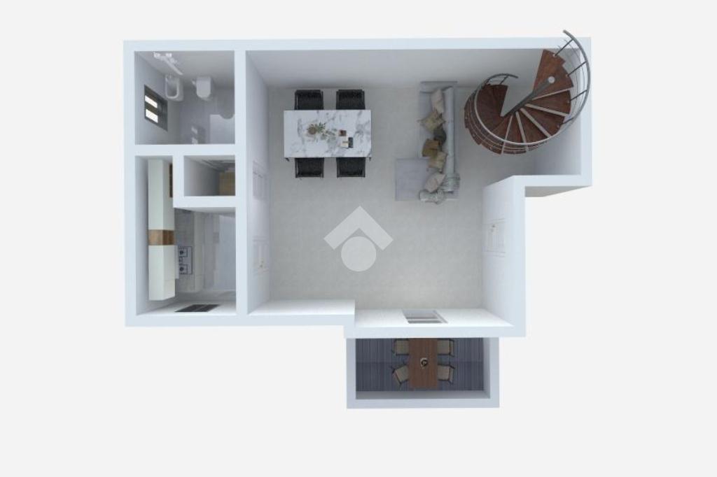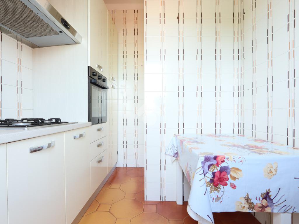 L’ingresso si apre su un ampio e luminoso soggiorno, ambiente accogliente e ben organizzato, che gode di un affaccio diretto su un terrazzo abitabile con splendida vista mare, perfetto per pranzi all’aperto, momenti di relax o per godersi il panorama in ogni stagione. Sullo stesso livello troviamo una cucina abitabile, separata e funzionale, e un bagno finestrato che completa il piano con praticità e comfort.