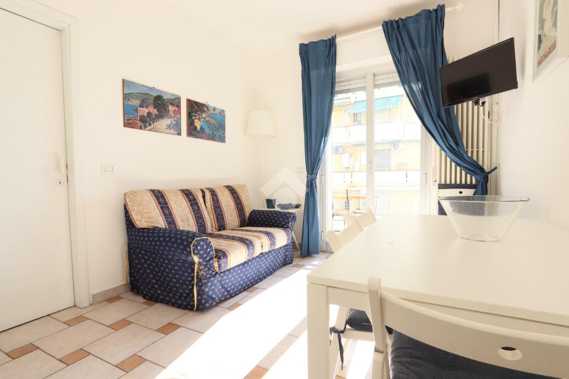 La soluzione si trova al secondo piano di una palazzina dotata di ascensore ed internamente è così composta: ingresso su luminoso soggiorno con angolo cottura, una camera da letto matrimoniale ed un bagno con box doccia. Il punto forte della soluzione è lo spazio esterno con una fantastica vista mare.
